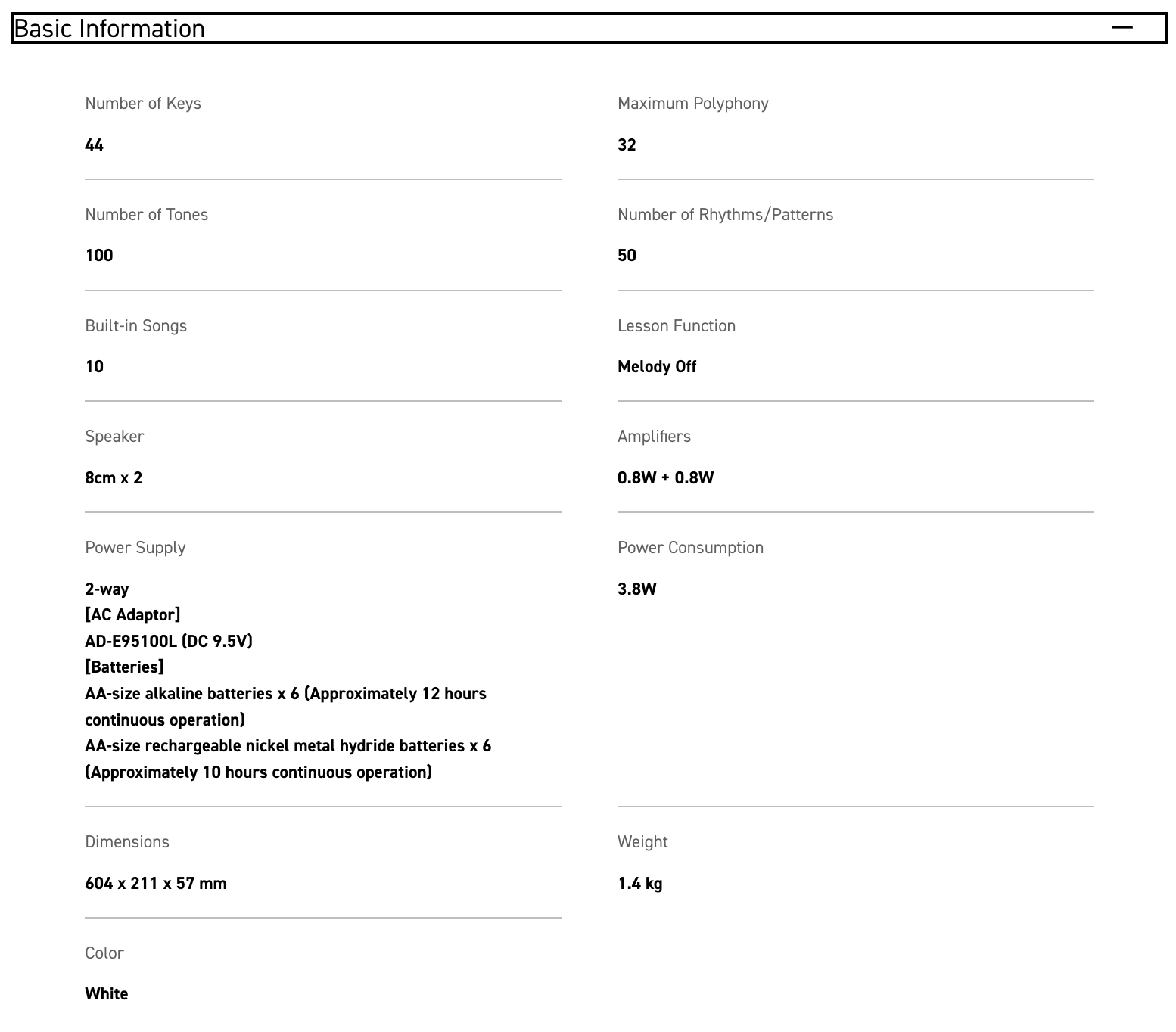- Maximum 32-note polyphony: Designed so that keys will sound even when many others are played at the same time